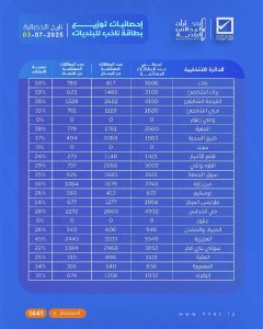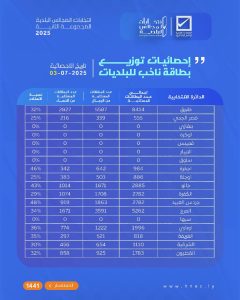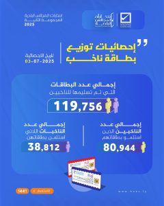 إحصائيات توزيع بطاقة ناخب تاريخ الإحصائية 03 – 07 – 2025