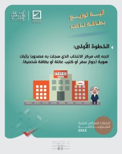 اتجه إلى مركز الانتخاب الذي سجلت به مصحوباً بإثبات هوية (جواز سفر أو كتيب عائلة أو بطاقة شخصية).