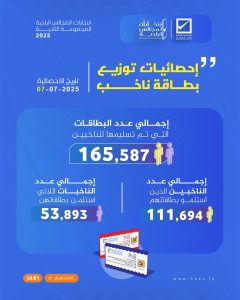 إحصائيات توزيع بطاقة ناخب تاريخ الإحصائية 07 – 07 – 2025