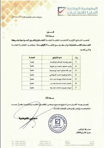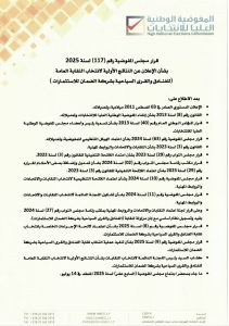 قرار مجلس المفوضية رقم (117) لسنة 2025 بشأن الإعلان عن النتائج الأولية لانتخاب النقابة العامة (للفنادق والقرى السياحية بشركة الضمان للاستثمارات)