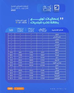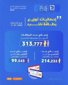 إحصائيات توزيع بطاقة ناخب تاريخ الإحصائية 17 – 07 – 2025