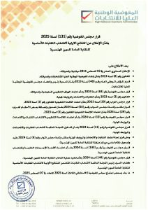 قرار مجلس المفوضية رقم (131) لسنة 2025 بشأن الإعلان عن النتائج الأولية لانتخاب النقابات الأساسية للنقابة العامة للمهن الهندسية