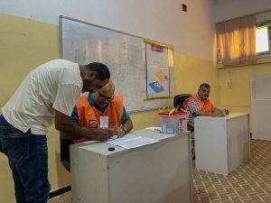 من داخل مراكز الاقتراع المستهدفة في انتخابات المجالس البلدية للبلديات التابعة لمكتب الإدارة الانتخابية الزاوية ( الزاوية المركز – الزاوية الوسط – الزاوية الغرب – الزاوية الشمال – صبراته – صرمان – بئر الغنم).