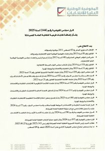 مجلس المفوضية رقم (144) لسنة 2025 بشأن إضافة نقابات فرعية للنقابة العامة للصيادلة