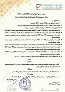 قرار مجلس المفوضية رقم (161) لسنة 2025 بشأن تعديل وإضافة فروع لنقابة المهن الطبية المساعدة