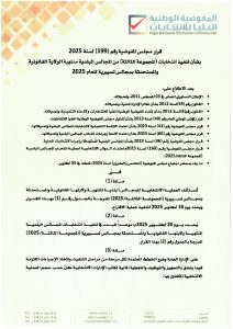 قرار مجلس المفوضية رقم (199) لسنة 2025 بشأن تنفيذ انتخابات (المجموعة الثالثة) من المجالس البلدية منتهية الولاية القانونية والمستحدثة بمجالس تسييرية للعام 2025