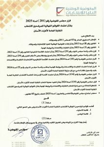 قرار مجلس المفوضية رقم (201) لسنة 2025 بشأن اعتماد القوائم النهائية للمرشحين لانتخاب النقابة العامة لأطباء الأسنان