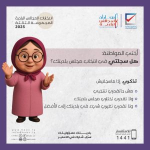 أختي المواطنة : هل سجلتي في انتخاب مجلس بلديتك ؟