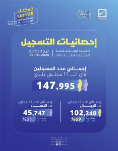 إجمالي عدد المسجلين في 11 مجلس بلدي ( 147995)