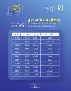 إحصائيات التسجيل تاريخ الإحصائية 26/ 10 / 2025