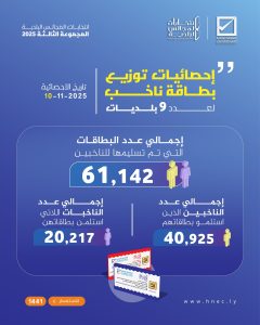 إجمالي عدد البطاقات التي تم تسليمها للناخبين/ات (61142).
