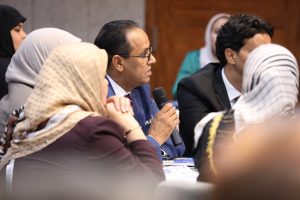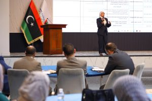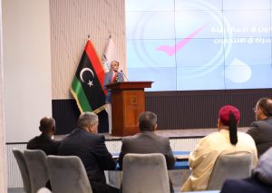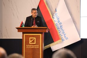 وأشار في كلمته إلى إحصائيات تدني نسب مشاركة المرأة في الانتخابات والتي تمحورت في مستويين من العنف: الأول وهو التعنيف الاجتماعي وهو ما يتطلب رفع مستوى الوعي العام لدى المجتمع الليبي بأهمية المشاركة، والثاني تمثل في العنف المادي وهو ما يتطلب سن تشريعات تزيل التحديات والعراقيل التي تعترض سبيل مشاركتها.