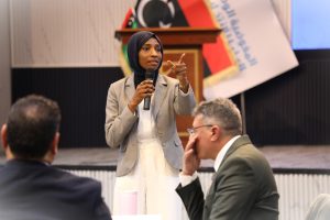 وأكد أن المفوضية حريصة على الأخذ بالمبادئ والمعايير الدولية المتعارف عليها وتأتي في مقدمتها مبدآ الشمولية والمصداقية، حيث يجب أن تشمل الانتخابات كافة أفراد وفئات وشرائح المجتمع دون إقصاء أو تهميش” من جانبها تحدثت ممثلة مكتب النائب العام السيدة د. عبير أبوساق عن أهمية التعاون بين المفوضية ومكتب النائب العام لضمان بيئة انتخابية آمنة لمشاركة المرأة في الانتخابات، وقالت “إن مكتب النائب العام يعمل على رصد الأفعال التي من شأنها أن تحد من مشاركة المرأة في الانتخابات، والتحقيق فيها لحماية المرأة وضمان سلامة البيئة الانتخابية”وأكدت على دعم مكتب النائب العام لجهود المفوضية لترسيخ بنية انتخابية آمنة وصون الحقوق السياسية، داعية المرأة الليبية إلى التقدم بثقة لنيل حقوقها وفقا للقانون والتشريعات.