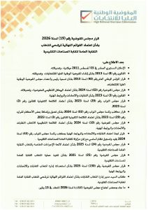 قرار مجلس المفوضية رقم (19) لسنة 2026 بشأن اعتماد القوائم النهائية لمرشحي انتخاب النقابة العامة لنقابة الصناعات التقليدية