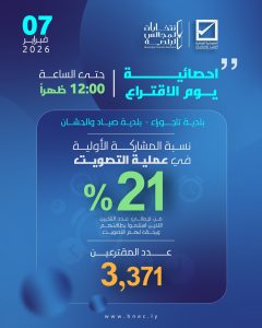 إحصائية يوم الاقتراع حتى الساعة 12:00 ظهراً بلدية تاجوراء بلدية صياد والحشان