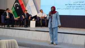 من جانبها، عرضت الدكتورة الصالحة محمد الدهاري دراسة ميدانية بعنوان “العزوف الانتخابي لدى المرأة: العوامل الاجتماعية والثقافية المؤثرة وإمكانية المعالجة – دراسة ميدانية على نساء الجنوب”، سلطت الضوء فيها على التحديات الخاصة بمشاركة المرأة في الجنوب الليبي.